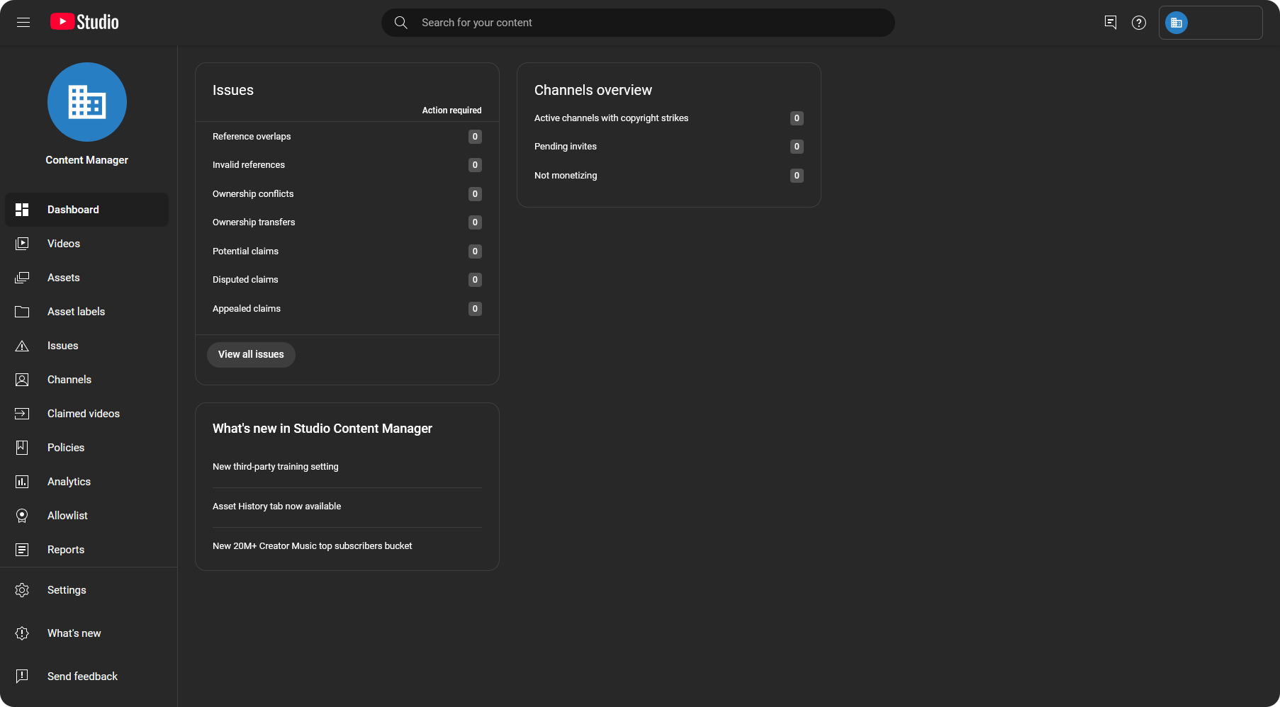 These accounts are particularly sensitive, as the Content Manager account allows you to monetize any videos found that contain similar audio/video. Hence, these special accounts are only given to rightsholders with "complex rights management needs".
